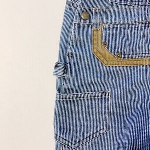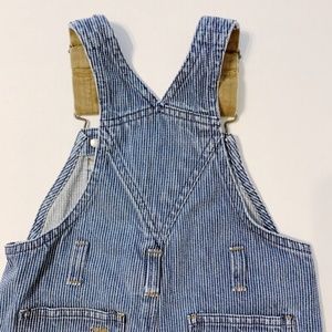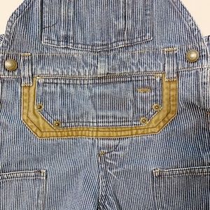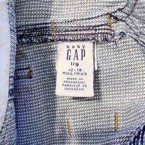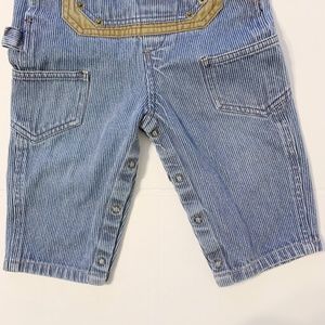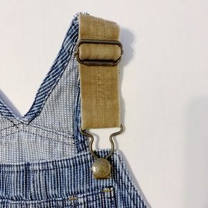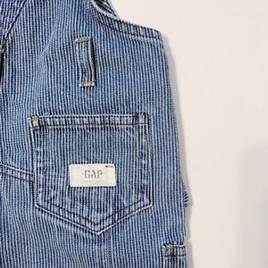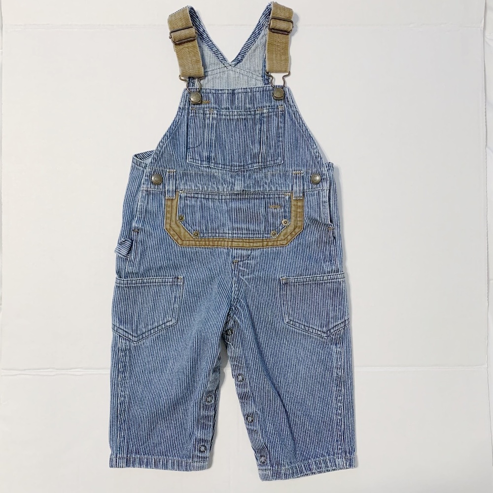 Super cute “back in the day” Baby Gap Over-alls with blue and white stripes and brown canvas details. Has button legs for easy diaper changes. Size 12-18 months.