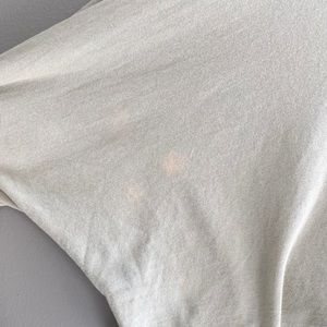 I only wore this a few times. Condition is great! Only flaw is some *incredibly* faint bleach spots on the back of the left sleeve, see last photo. They are really barely visible.