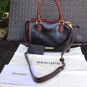 Genuine Black leather w/ Pecan croc embossed strap and piping!