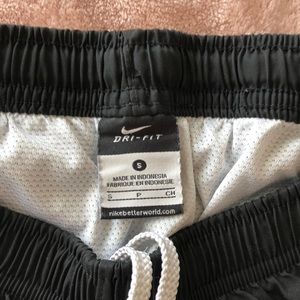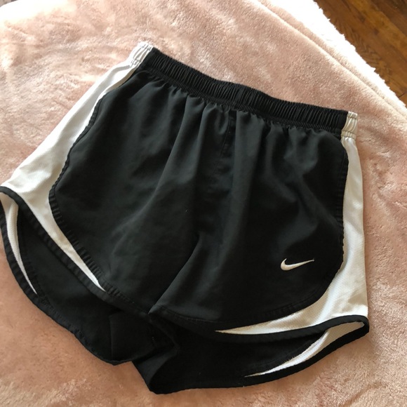 Black and white Nike running shorts! Great for running or working out. Great condition- only worn a few times! Built in liner and adjustable waist band. Size small women’s.