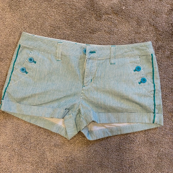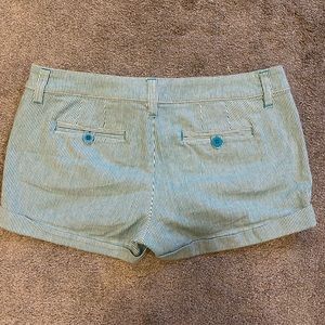 Super cute pinstriped shorts in beautiful teal and white. Button detailing on pockets. Size 5/6.