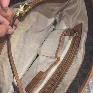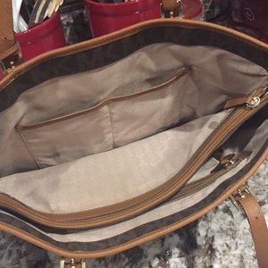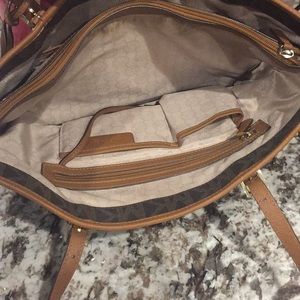 Michael kors monogram tote great condition minor waer on the inside as shown in second to last photo straps in great condition beautiful color & nice big size! Perfect for laptop