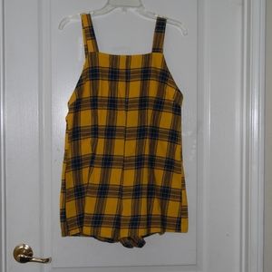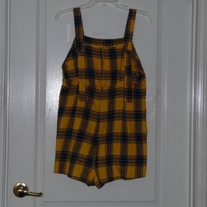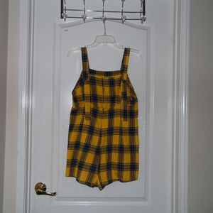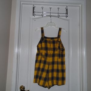 USED Shein: Yellow & Blue Checked Overalls With Adjustable Straps