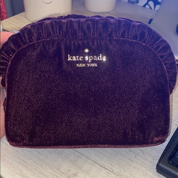 Velvet burgundy cosmetic bag from Kate Spade with gold hardware