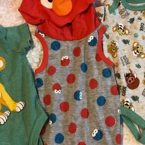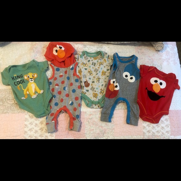 Disney Lion king and Sesame Street onesies which are adorable. Hardly used and washed. Almost new.