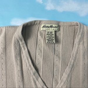 Light brown Eddie Bauer cardigan size women’s large. 100% cotton made in the UK.