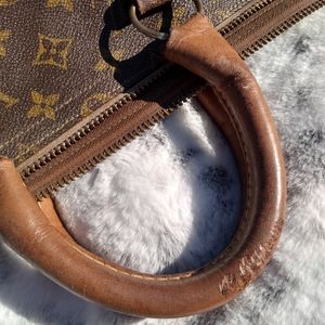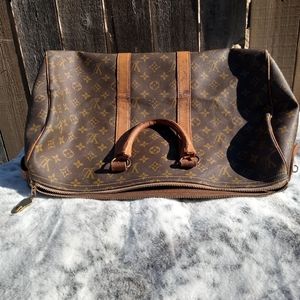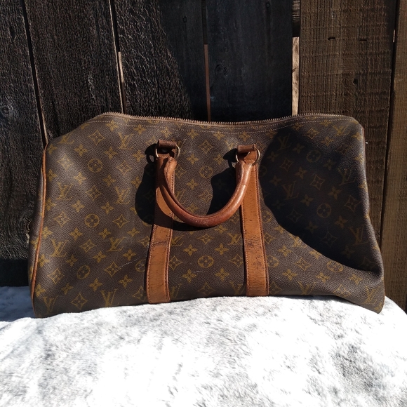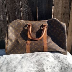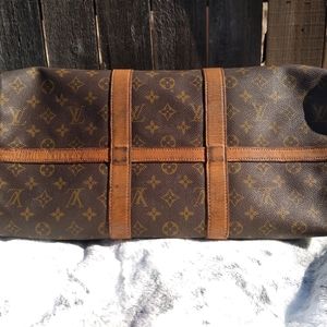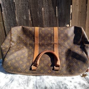 Louis Vuitton French Company Keepall 45. This bag is very rare, you do not see many of the FLC Keepalls around anymore. This bag was purchased by my Grandmother in 1973. It has wear on straps & surrounding leather. There are no tears, cracks or holes. Inside is very clean. Would be a great bag to get restored or to use as is. There are a few white marks on canvas shown in photos, but for her age, she looks amazing. I have not seen anyone else with this size FLC bag.