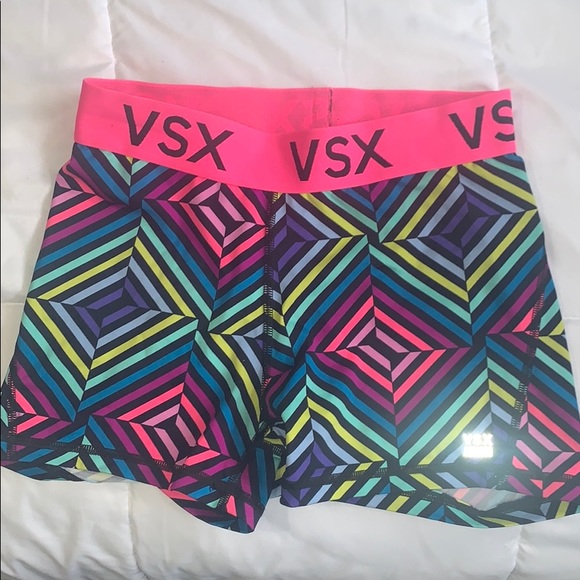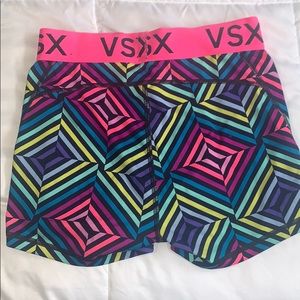 Bright, colorful workout shorts with reflective Victoria Secret logo. Sz XS, squat-proof! ๐๐ปโโ๏ธ