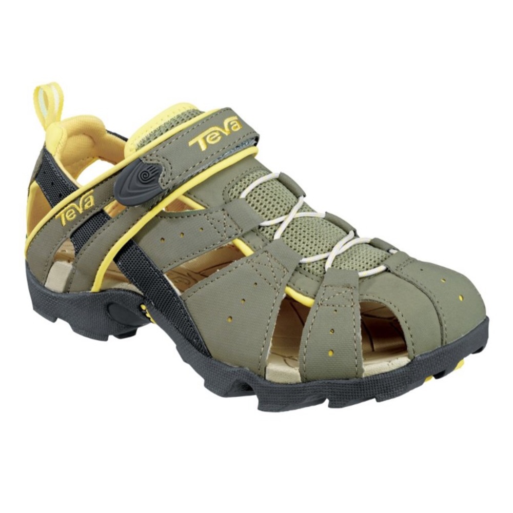 Yellow/Gray Teva Deacon climbing/hiking sandals or water shoes. Fast drying and super comfortable. Only worn once and cleaned up for their next owner. (Got pregnant the summer I bought them). There’s one spot as pointed out in photo #7, looks like possible discolored shoe glue, no other defects noticed.
