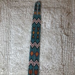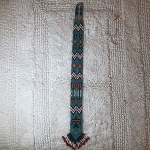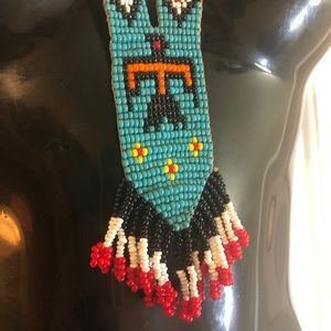 Colorful long handmade seed bead Native American inspired boho necklace featuring a thunderbird and beaded fringe. I love this necklace so much I just never wear it. Measures 17.5 in.