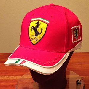 a symbol of the luxury automotive lifestyle and passion for racing. This beautiful Scuderia Ferrari Red Team cap is brand new with Wynn price tag. Gorgeous Red Color, beautiful embroidered designs and patches, metal Ferrari adjustable clasp in back. Absolutely NO wear or tear. One size.