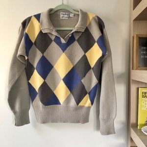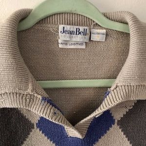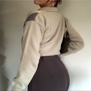 •awesome “hand-loomed” cotton sweater with a minimalistic style argyle pattern, buttoned collar & an overall beige color