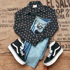 - one tiny mark in the collar (pictured) from when I removed a vintage tag. Haven’t tried removing it so it should come out but otherwise it looks like it has barely been worn!