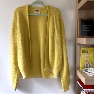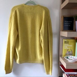 •adorable lemon-yellow color, slightly oversized with varsity style stripes along sleeves & bottom