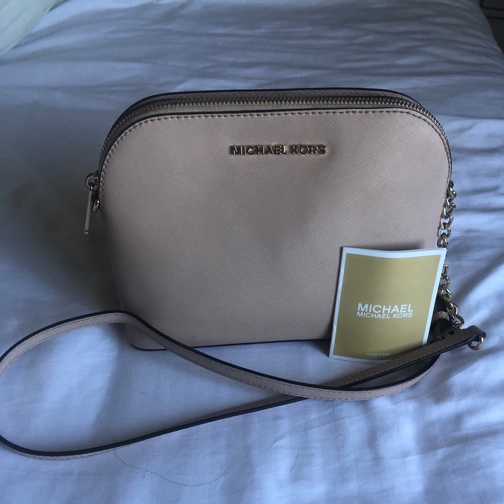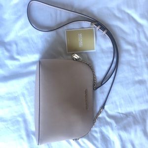Michael Kors crossbody bag in a dusty pink color. Has an adjustable strap to make it shorter or longer. Used but in great condition.