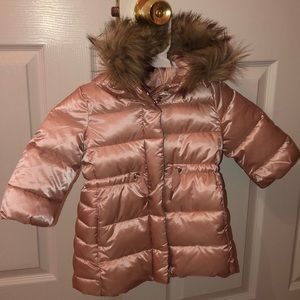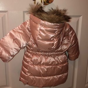Baby gap brand new toddler winter jacket. Snap off hood, drawstring adjustable waist. Zipper and button closure on front. Thick and warm. Stored in closet of home with no pets, non-smoking home.