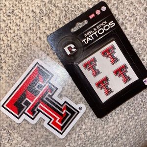 Texas Tech “double T” sticker and small peel & stick tattoos.