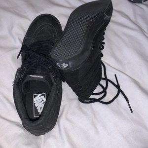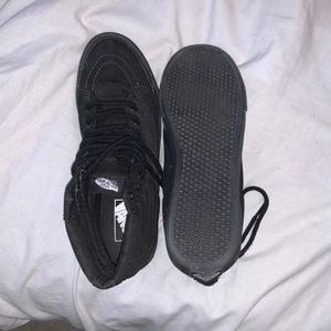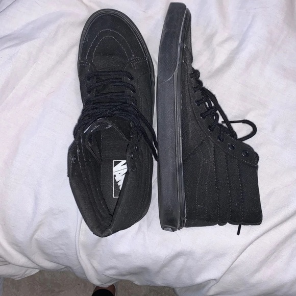 Black high top vans. Size men’s 7.5 or women’s 9. In good condition only worn once