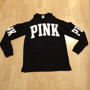 This VS PINK cold shoulder long sleeve Tee is amazing. The design is perfect for comfort and staying warm during the cold months. The fabric feels so cozy. Wear with jeans or leggings to be on trend!