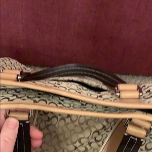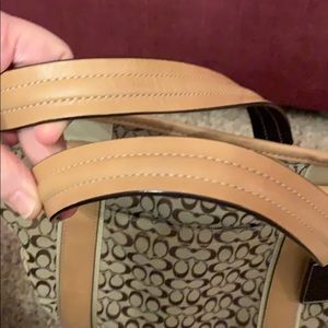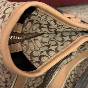 Good condition Coach bag minor smudges on bottom but no rips tears or odors. This can be a crossbody bag as well, strap does have a few marks but may clean up easily. Inside is clean no stains. Has zipper pocket and inside and outside slip pockets. Great bag for school or work. Comes with dustbag.🦩🦩