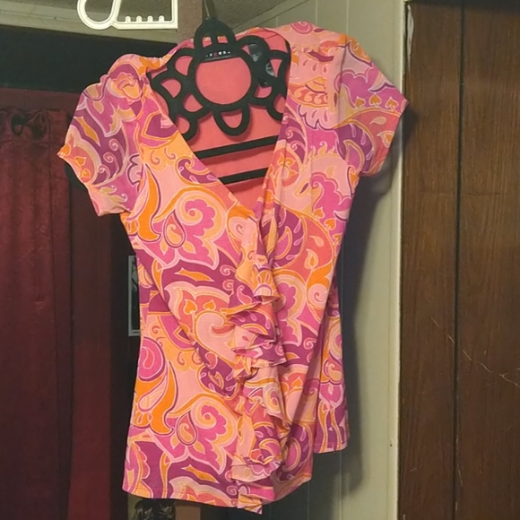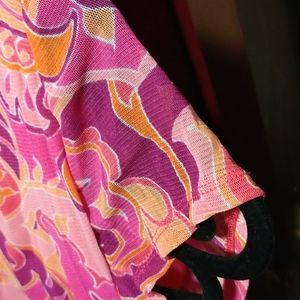 Blouse is made with the colors - white, Pink ,purple,orange and yellow