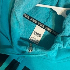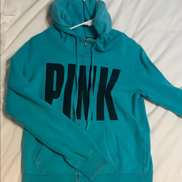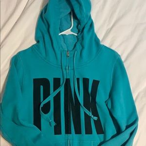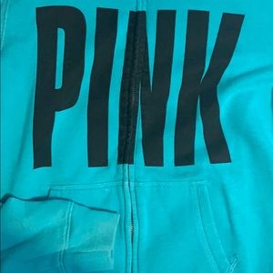 PINK VICTORIA SECRET full-zip, teal, SZ small hoodie••zipper works perfectly••