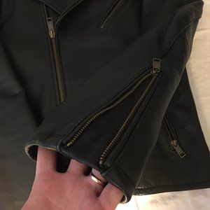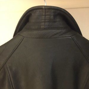 The shape / cut of this biker jacket is perfect (tailored fit & the leather is so thick yet soft as butter.