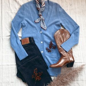This cardigan is so pretty for a wintery day! ❄️ The color adds a beautiful pop to any neutral outfit or it would also be so pretty with some pastels in the spring.