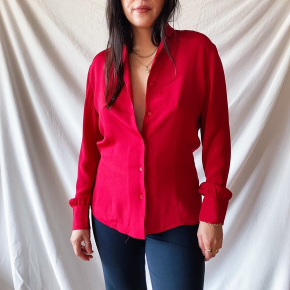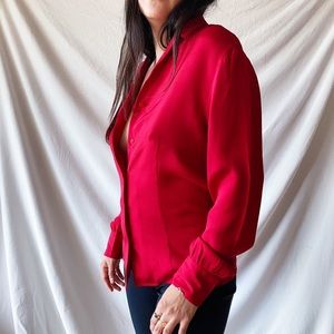 Vintage silk red blouse. Great condition. 100% silk. The tiniest hole on shoulder can’t even tell. Seen on a small model. Size small.