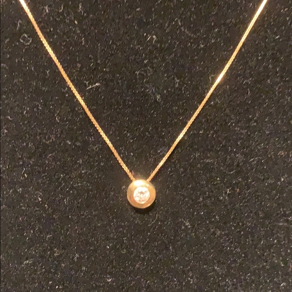 Solid 14 K Box Chain Diamond Necklace Bezel Set