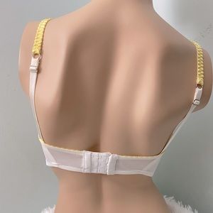 This is a Super Cute and Sexy bra. Multicolored White Lace and and Yellow Straps with nice details. Size is 34DD. In Excellent Condition.