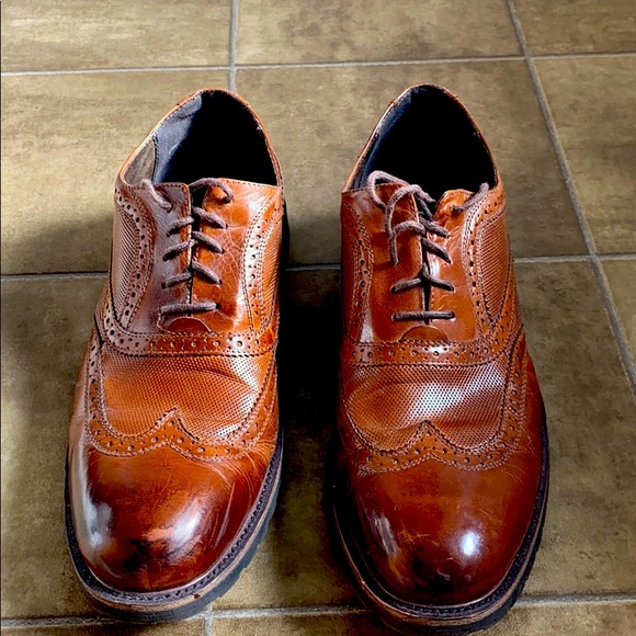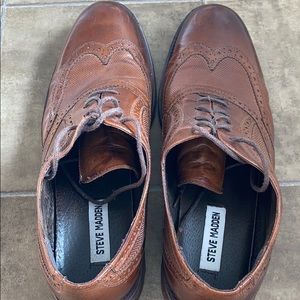 MEN Steve Madden Wingtip Dress Shoe. Cognac color. Good condition. Great sole. Normal wear. Leather Upper!