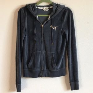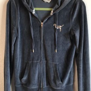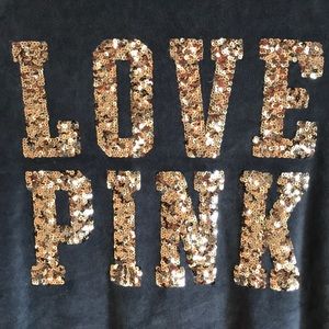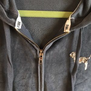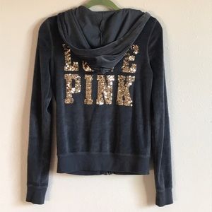 This is a super adorable sparkly PINK Victoria’s Secret zip up hoodie. It’s really comfortable and cute.