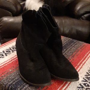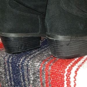 Cute short top black suede leather boots. Lightly worn and very clean.