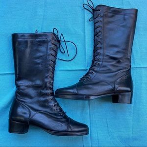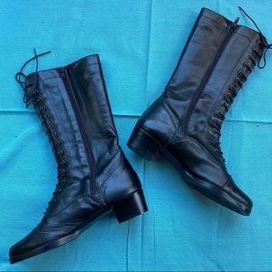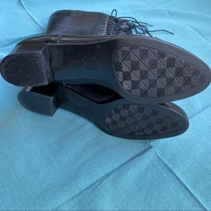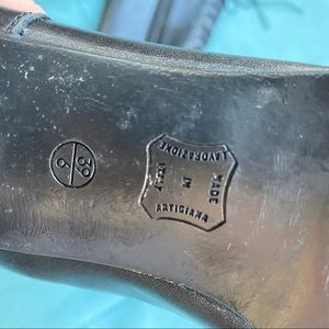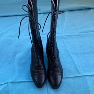 Perfect lace up black boot, made in Italy. Size 39, which is around an 8.5-9. Zippers on the sides for an easy way to slip on and go. Minor signs of wear (one small scuff on left shoe towards the back, not noticeable) but they seem to be very lightly worn overall. So much life left!