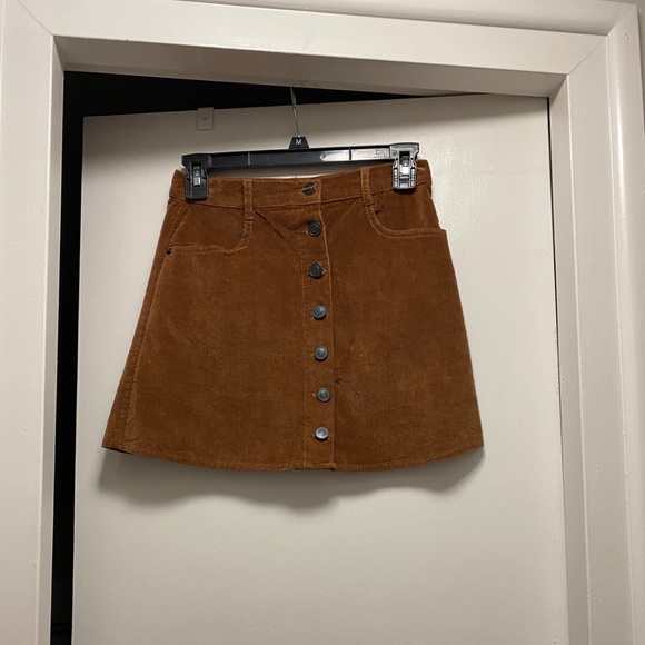 Brown, corduroy, mini skirt with buttons down the front, worn twice