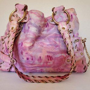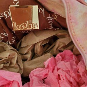Vintage preowned KOOBA Hobo Handbag Purse Shopper Tote in shades of purple pink peony blush.