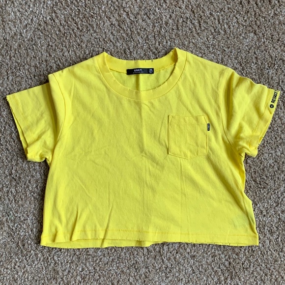 Mustard yellow Obey crop top with pocket. Brand new w/o tags. Size XS