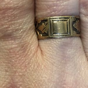 GORGEOUS VERY ORNATE DETAILED ANTIQUE VICTORIAN BAND RING WITH A PLACE FOR A MONOGRAM. IT CURRENTLY IS BLANK SO COULD BE ENGRAVED.