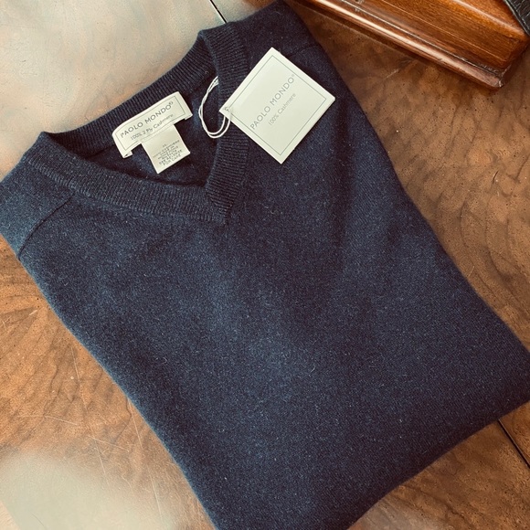 Paola Mondo Blk Cashmere V-Neck Sweater size XL