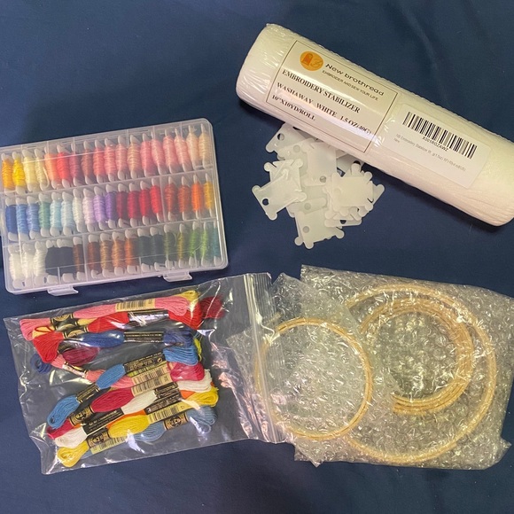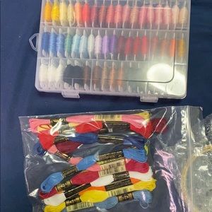 Comes with; organizer case and 50 assorted DMC floss total (the ones in case are numbered)