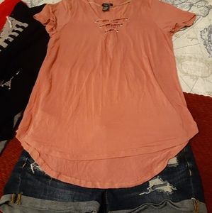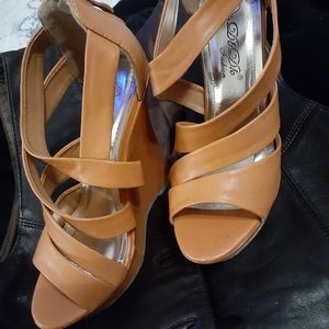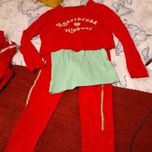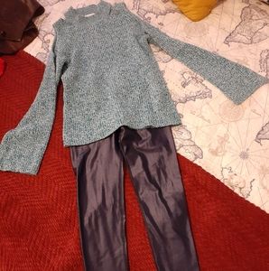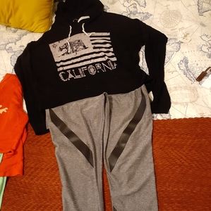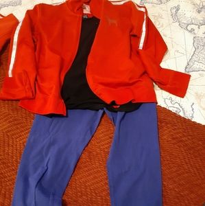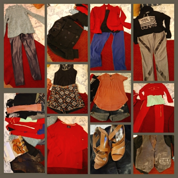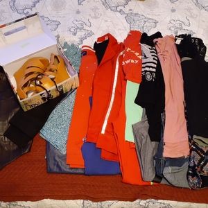 Four workout leggings, two shorts, five short sleeve, four long sleeve, one zipper sweater, one jacket, one vest and one pair of heels.(7) Different brands and at good care condition.