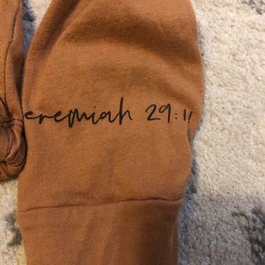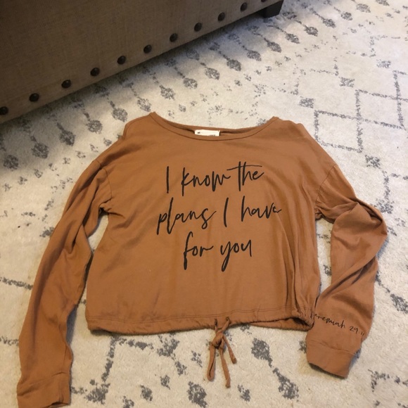 Jeremiah 29:11 “I know the plans I have for you” cropped long sleeve T-shirt. Super cute and in good used condition. Only worn a few times. Drawstring at bottom- size SMALL