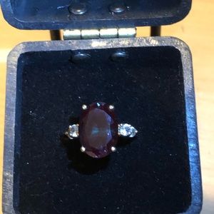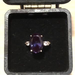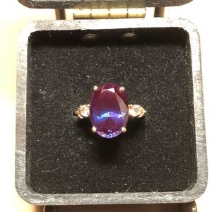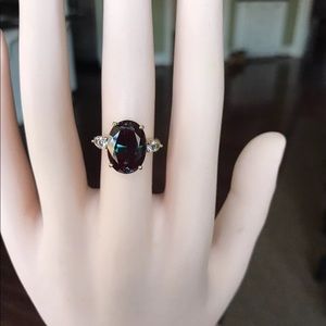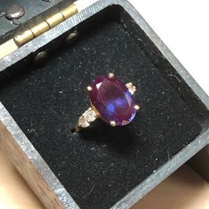 GORGEOUS VINTAGE RARE GREEN TO PURPLE LARGE LAB ALEXANDRITE WHITE CZ STONE RING.
