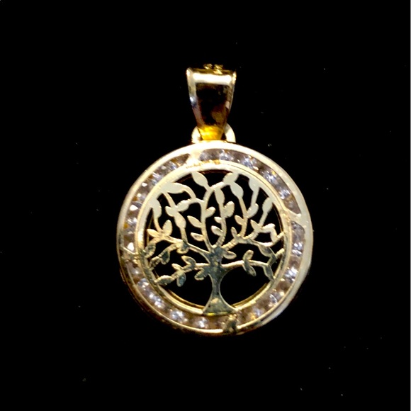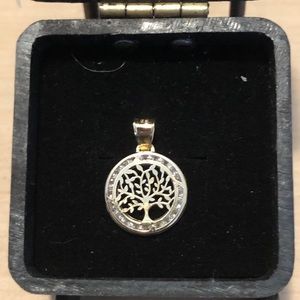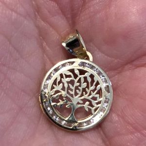 THIS IS A SWEET VERY PRETTY TREE OF LIFE PENDANT CHARM WITH WHITE CZ STONES ALL THE WAY AROUND IT.