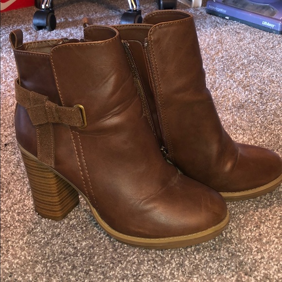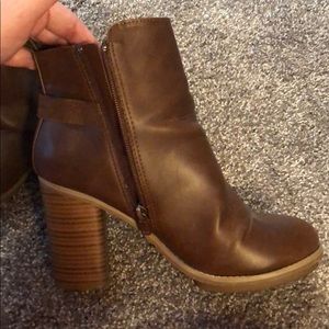 Heeled brown booties with zipper closure. Gently used. Cleaning out my closet. Make me an offer! No box