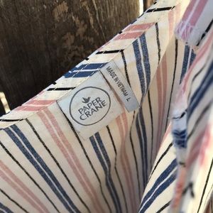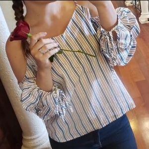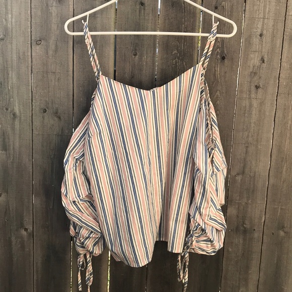 Size L Pink and blue off the shoulder striped blouse Has ties at sleeves so they don’t fall down and adjustable shoulder straps