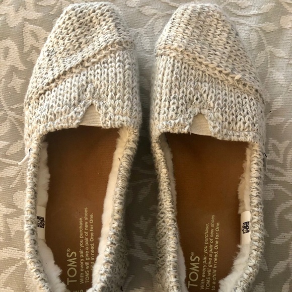 Sweater like fur lined Toms. Like new condition. I was so excited to get these and they were too big. Heathered gray color