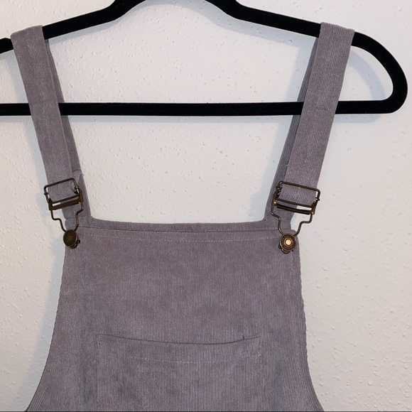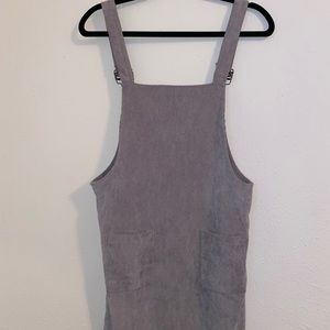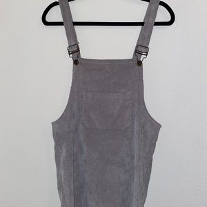 Super cute gray overall dress with pockets on the front and back