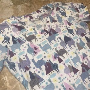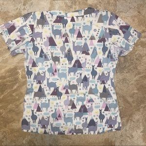 Multi-colored llama scrub top for healthcare workers. Super cute and comfy. Size small UA brand. Has two pockets on each side. Still in great condition. Sizing label came off.